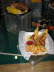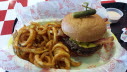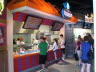 By now you’ve seen our previous coverage, which includes the themed outside of the restaurant entrances for Cletus’ Chicken Shack, Krusty Burger, Moe’s Tavern and more. While the inside of Moe’s does indeed look like Moe’s from the cartoon (see the pictures) what you’ll find inside the rest of the doors looks more like a mall food court. Guests are asked to enter a small queue before being released to browse and select what they would like to eat from the various counters that include Lisa’s Teashop, Luigi’s, The Frying Dutchman, Krusty Burger, Cletus’s Chicken Shack or get a tasty beverage from the Flaming Moe’s counter. To be honest, Universal Orlando’s head chef has been working serious overtime on this one, because there are simply too many choices and options than anyone can seriously cover in one article, so I’ll talk a bit more about the ones I tried, the things I saw first hand, and if you want to see the complete menu… I tried to take good pictures of each one so you can see just how many choices you have. Just on the beverage side alone, in addition to all your normal beverage choices you can get anywhere in Universal Orlando, you can also try one of 8 different Simpsons themed drinks. For adults you can try Duff Beer, Duff Lite or Duff Dry… and to be honest these seemed to be selling like hotcakes because if you’re into beer how can you walk through the hallowed doors of Moe’s and not at least try a Duff? At the time of my visit Moe’s Tarvern only had Duff and Duff Lite on tap, so to get a Duff Dry you had to go over to the Moe’s Express counter where they had the themed glass bottles of Duff. While I got a quick pictures of these rare Duff glass bottles… guests are not being given these to take with them however. All the Duff is poured into a glass or cup and the bottles disposed of behind the counter. I was told that they were working on getting all three versions bottled into themed Aluminum Bottles in the near future so they could give them directly to the guests. For those not into beer or underage, they’ve got the Flaming Moe signature drink which comes in a special glass with a dry ice chamber at the bottom to keep it bubbling like mad while you drink it. I really enjoyed the one I tried, as it had a nice citrus soda taste to it, infused with the dry ice bubbles. (Watch the video below to see how they pour it!) If I had to describe it, I’d say it tasted almost like an even better tasting version of Sundrop, but with some extra unique flavors added in. Very refreshing and you get to take home your official Flaming Moe glass too! Want something a little different? There are three juice based drinks to choose from: the Mt. Swartzwelder Apple Drink (a mixture of apple juice, apple syrup, lemonade and tea), the Groovy Grove Juice (OJ, lemonade, blood orange syrup) or a Mr. Teeny (Lemonade, Pinapple Juice with Blue Curacao Syrup). Talking with the bartenders at the Moe’s Express counter revealed that of the three, the Mt. Swartzwelder Apple Drink already seemed to be a guest favorite, behind the Flaming Moe of course. Finally, last on the list is the official Buzz Cola… another Simpsons creation, described officially as a ‘Zero Calorie Cherry Flavored Cola’. I did a little research with the staff and bartenders and learned that Buzz Cola is really Coke Zero with an added pump of the cherry flavored Buzz Cola syrup. As the only diet drink in the bunch, this may be your ticket, but it still tastes like a zero calorie drink and I found it a little lacking for that reason. Fortunately, I’ve got the solution for you… so consider this the first of what may eventually become a “secret menu” of options from Springfield, but you can ask the bartenders to make you a Buzz Cola with real Coke instead of Coke Zero. If you want a Shirley Temple style version, ask if they will a pump of Buzz to a Sprite instead. Ok, enough about the drinks… lets take a look at the food options. There is a lot of it… more than I can event possibly remember, and more than any one could possibly try to taste in one sitting. I sampled a few during a special media tour and then went back the next day to see it all as a guest, ordered my own from the counter and sat there for awhile and people watched… taking it all in. Hands down, Universal’s food and beverage division has hit another ball completely out of the park with this place. People were lined up in droves for the opportunity to shove a Krusty Burger in their facehole making this the busiest looking restaurant in the entire theme park. Those looking for a more healthy choice can grab something from Lisa’s Teahouse near the front of the line, or you can venture out to the other counters to have your dish custom assembled in front of your eyes by the staff, making it just the way you like it. The one counter that seemed to have the slowest business during my visit was The Frying Dutchman (seafood) which features battered and plattered fish, baskets of Shrimp or Calamari, or a bowl of Clam Chowd-arr! There were light crowds at Luigi’s pizza stand, but they were thick as can be over at Cletus’ Chicken Shack and Krusty Burger. Krusty offers hot dogs, a Ribwich and hamburgers as you would expect, but in addition to the Krusty Burger their actual signature item is a little number called the Clogger Burger. This is a double cheese burger, topped with bacon, a secret sauce, and melted cheddar cheese sauce. They described the Clogger to essentially be the embodiment of Homer Simpson in Burger form… big, sloppy and hard to handle… but you’ll enjoy every second of it. It comes with a large side of seasoned curly fries and is really quite good and especially filling. I really wanted to try the Ribwich too… but I ran out of time, so putting that on my list of things to try next time. Over at Cletus’s Chicken Shack they have chicken, chicken and more chicken dishes, each which comes with a